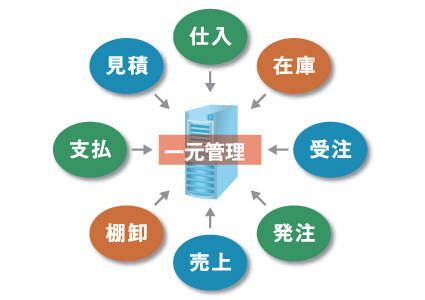遠隔地の拠点をネットワークで結ぶWAN構成にも対応。複数拠点の売上・仕入・在庫データをリアルタイムで一元管理することが可能です。
